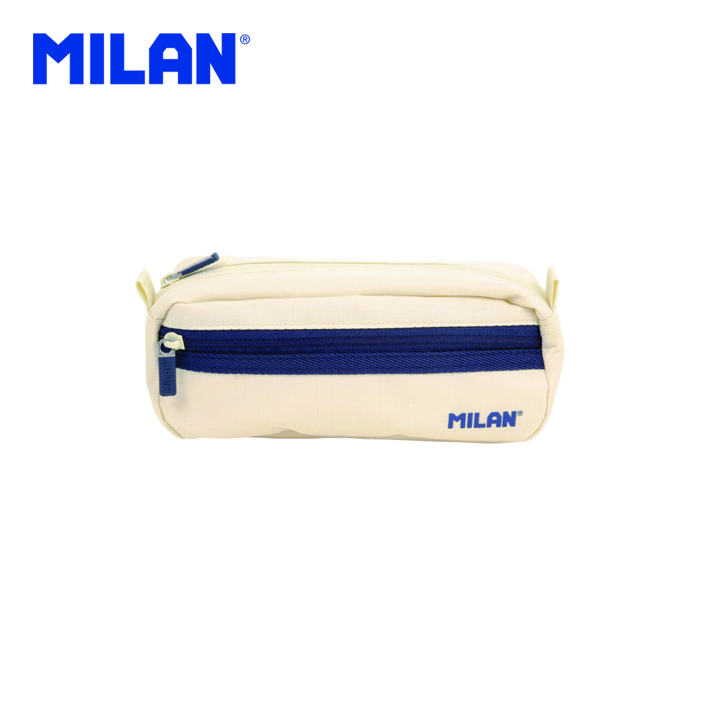 2-zippers rectangular beige pencil case. 430 since 1918 Collection, inspired by the original colours and design of MILAN erasers, manufactured in Spain since 1918. With a small inner front pocket and a large main compartment.